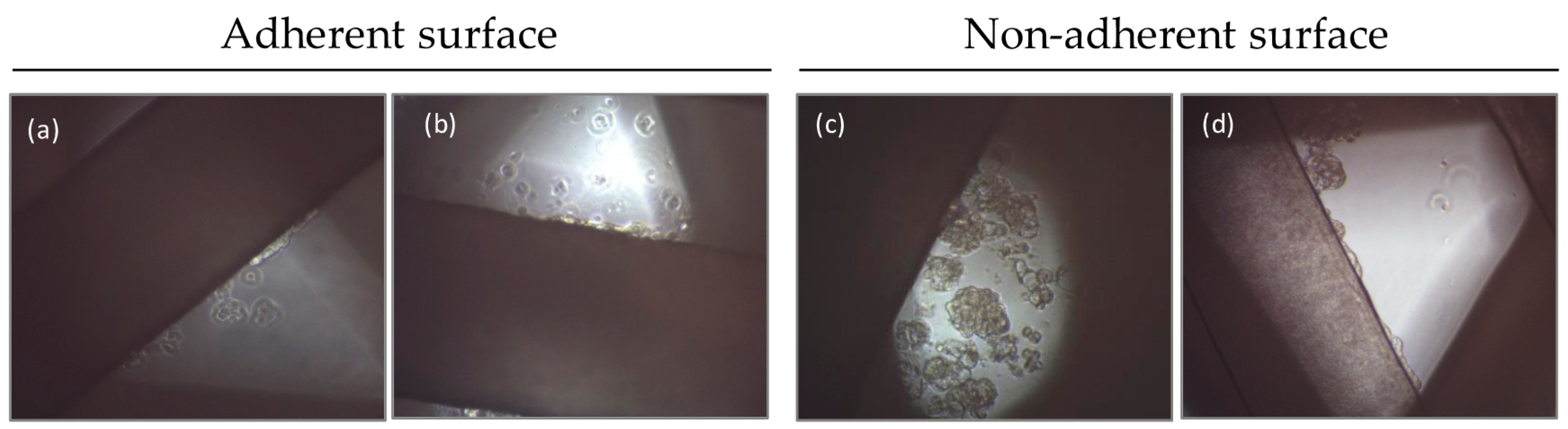 2.3. Adherent and Non-Adherent Conditions for Scaffold Cell Adhesion