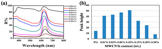 2.3. Effect of MWCNTs on the Color of Photonic Crystal Films