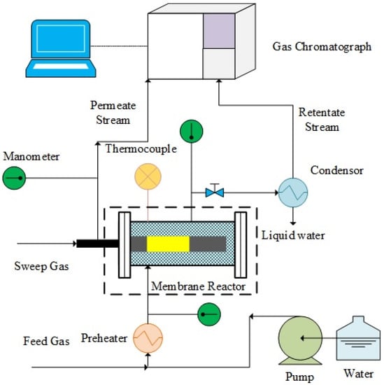 Figure 9. Schematic view of the experimental setup used for permeation and MSR reaction tests.