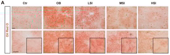 HepG2 cells were routinely cultured in DMEM (Gibco, Waltham, MA, USA) supplemented with 10% FBS in an incubator under an atmosphere of 5% CO2 at 37 °C. To accumulate fatty acids, HepG2 cells were exposed to OA at a final concentration of 1 mM for 24 h. Then, daidzein or genistein was added to the cultures at the final concentration of 50 μM for another 24 h before Oil Red O staining was performed. To evaluate the suppression function of soy isoflavones, 50 μM genistein was added to the HepG2 cells and incubated for 24 h, and the insulin treatment was 12 h before genistein was added.