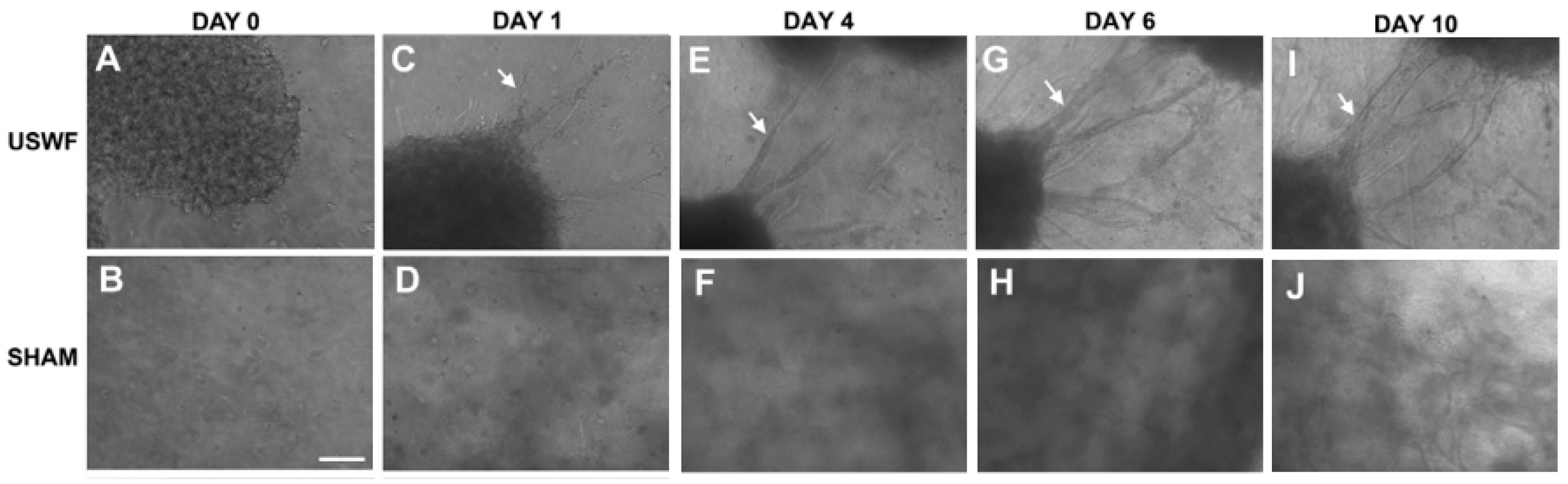 6.2. Vascularization of USWF-Induced Endothelial Cell Spheroids