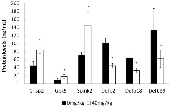 2.6. Differentially Expressed Proteins in Epididymal Luminal Fluids