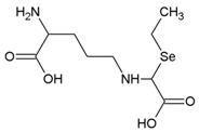 Among the inorganic compounds which are used, one can mention selenite (IV), and in the case of organic compounds, selenomethionine, Se-methylselenocysteine, and others can be distinguished. Although administered selenium compounds exhibit different protective effects they are metabolized to a final product (methylselenol) which exerts the most potent anticarcinogenic effect [106,107].