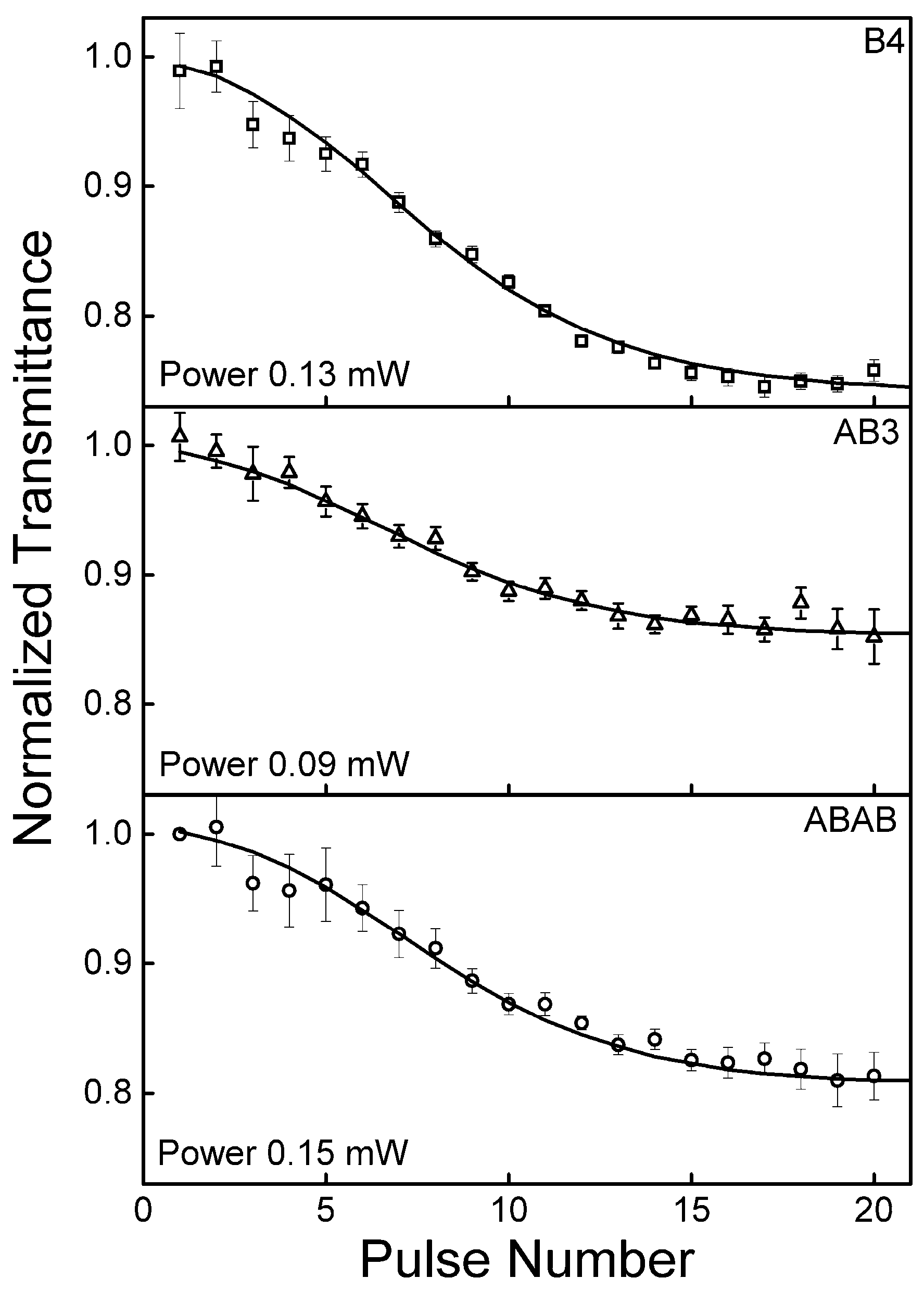 | PTZS | pulse train Z-scan technique at 532 nm |