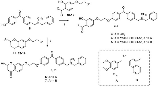 Synthesis of compounds 3–7. Reagents and Conditions: (i) K2CO3, acetone, reflux.