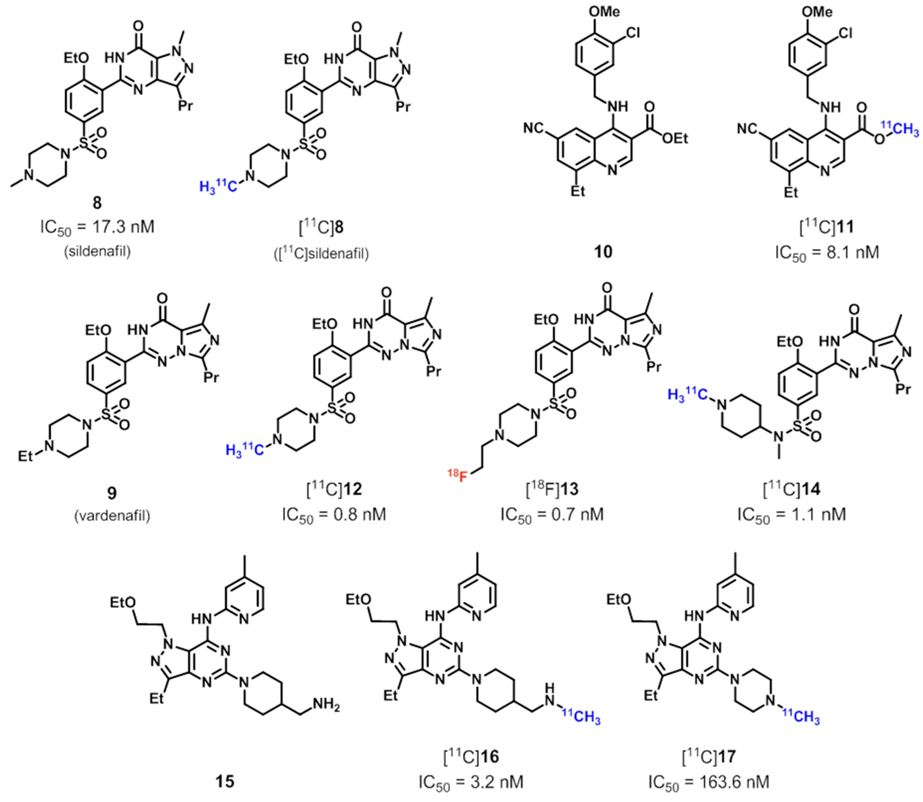 PDE5[11C]8 ([11C]sildenafil), [18F]13, [11C]14, [11C]16, [11C]17[97]
