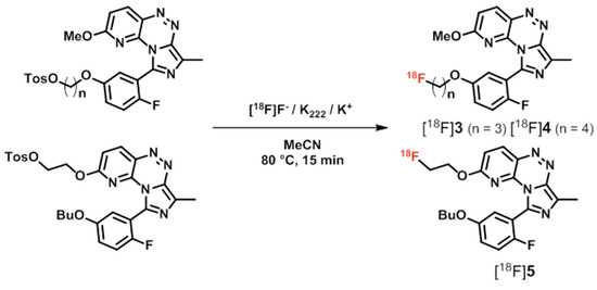 Scheme 3. Radiosyntheses of [18F]3, [18F]4, and [18F]5.
