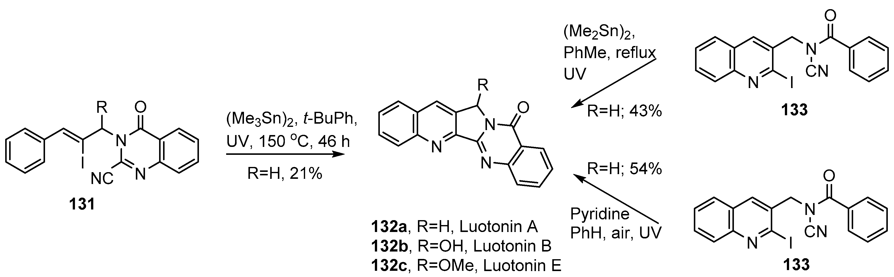 - Toyota, M.; Komori, C.; Ihara, M. Three-step total synthesis of pyrroloquinazolinoquinoline alkaloid, luotonin A, by intramolecular hetero Diels-Alder reaction. Heterocycles 2002, 56, 101–103. [Google Scholar] [CrossRef]