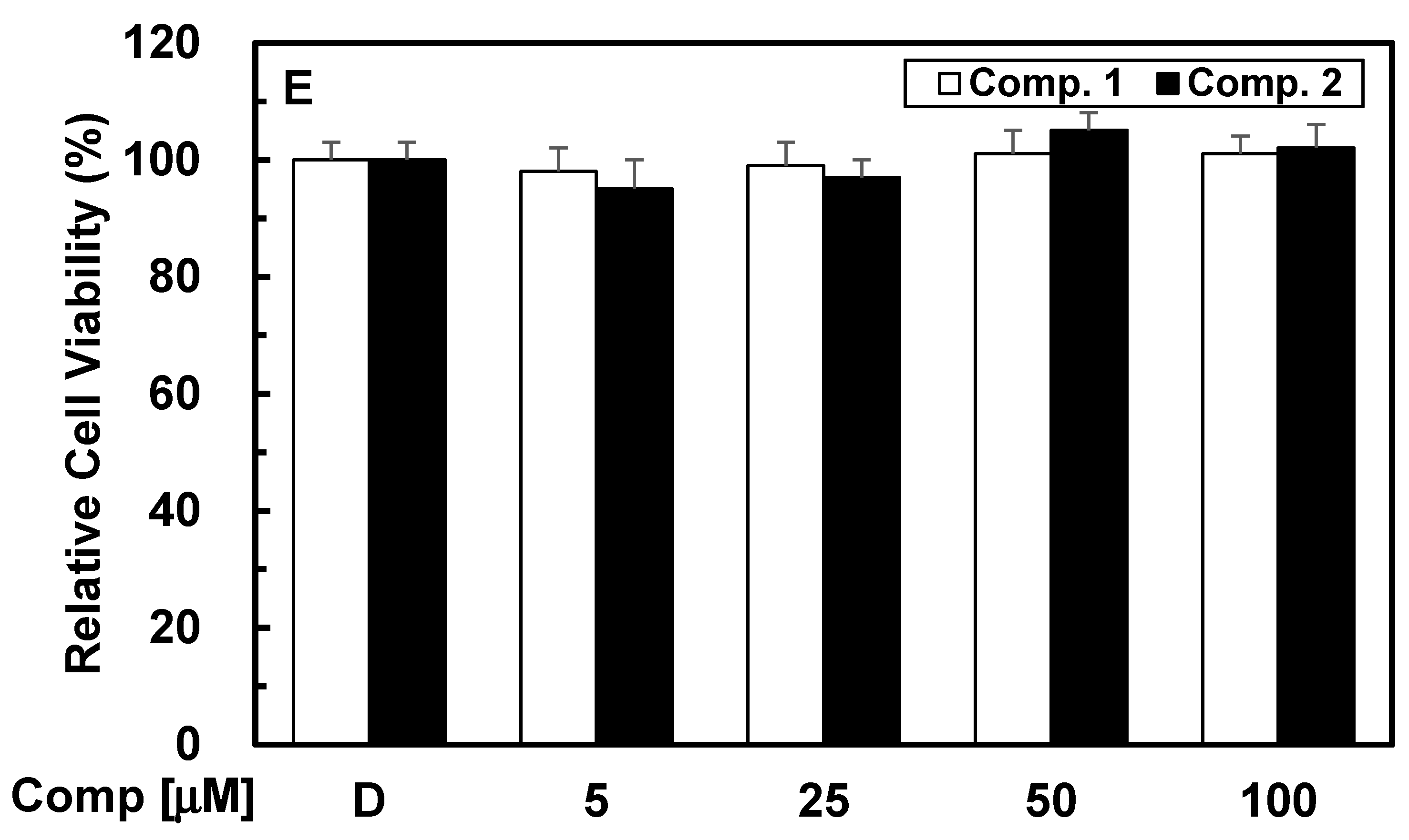 Effects of 1 or 2 on cellular viability was measured by MTT assay. D = 0.2% DMSO is the vehicle control.