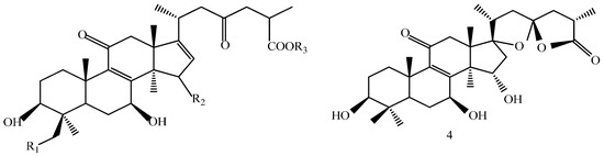 - Wu, G.S.; Guo, J.J.; Bao, J.L.; Li, X.W.; Chen, X.P.; Lu, L.L.; Wang, Y.T. Anti-cancer properties of triterpenoids isolated from Ganoderma lucidum—A review. Expert Opin. Investig. Drugs 2013, 22, 981–992. [Google Scholar] [CrossRef] [PubMed]
