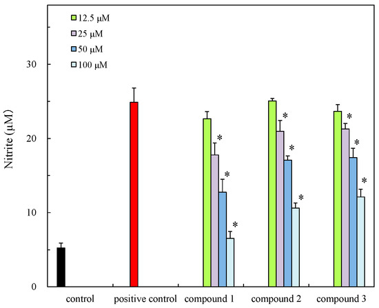 3.8. Anti-Inflammatory Effect on Nitrite Production on RAW 264.7 Macrophages