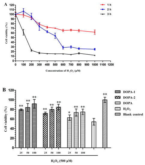 2.4.1. Effect of H2O2 on the Viability of Macrophages