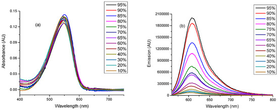 | % Glycerol | Viscosity (η)/cP | Fluorescence Quantum Yield (Φf) | Fluorescence Lifetime (τf)/ns * | kr/ns−1 | knr/ns−1 |