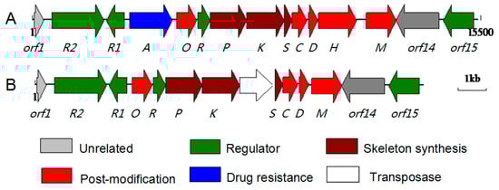 Organization of the ABX clusters from Streptomyces sp. FJS 31-2 (A) and Streptomyces sp. FXJ 1.264 (B).