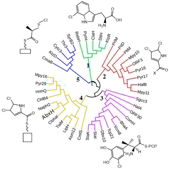 Phylogenetic analysis of identified halogenases from actinomycetes.