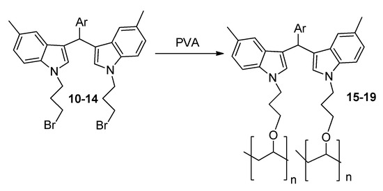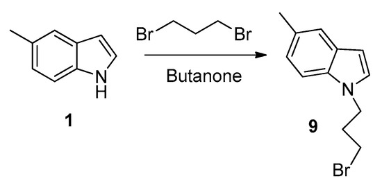 3.3. General Procedure of Bromoalkylbis(indolyl)methanes (3–5, 10–14)