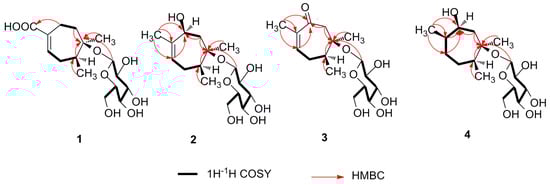 Key COSY and HMBC correlations of compounds 1–4.