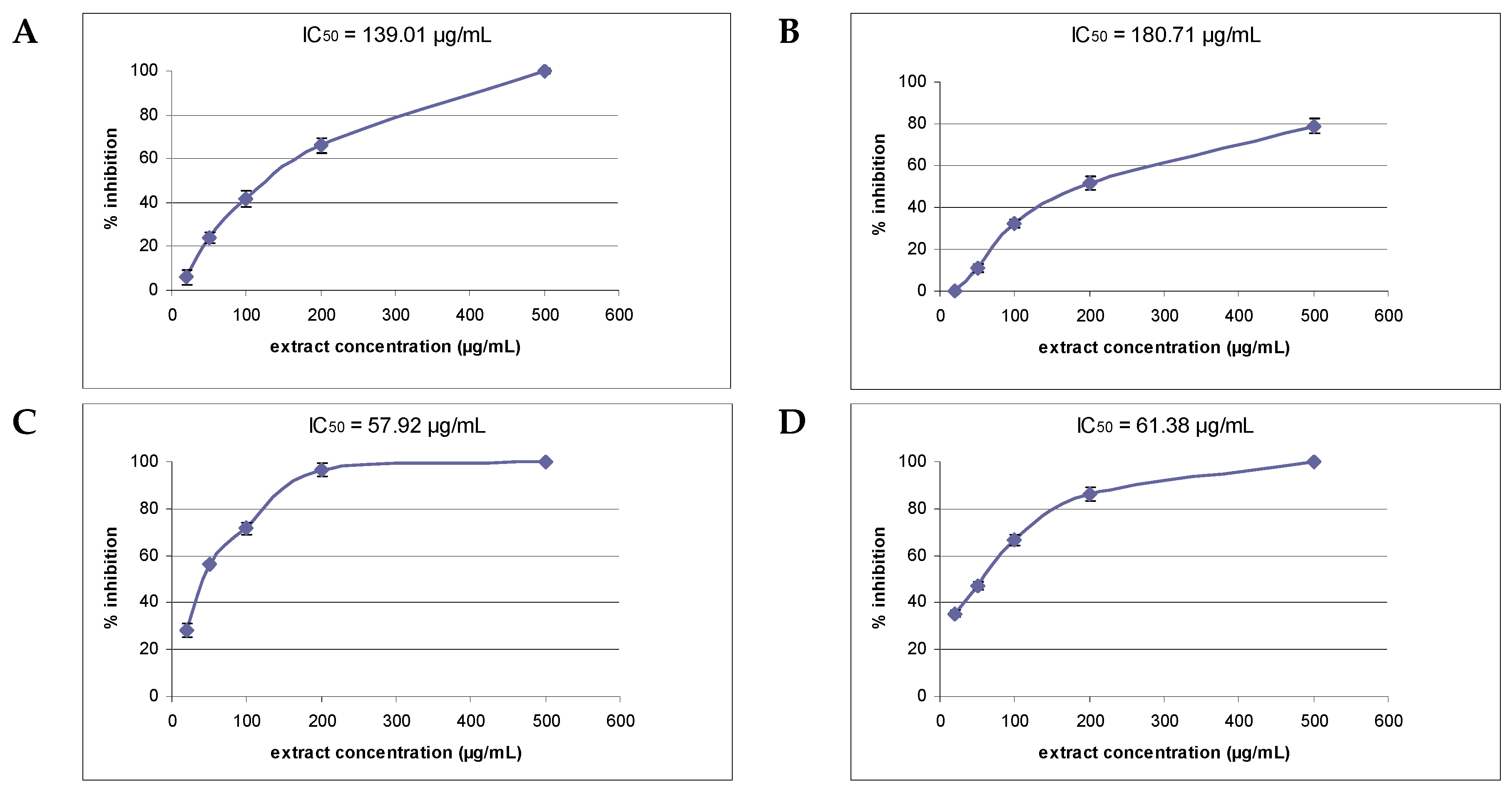 | Plant Material | Total Flavonoid Content * | FRAP µM Fe(II)/g Dry Extract | DPPH Assay EC50 (µg/mL) ** | % Inhibition Lipid Peroxidation |