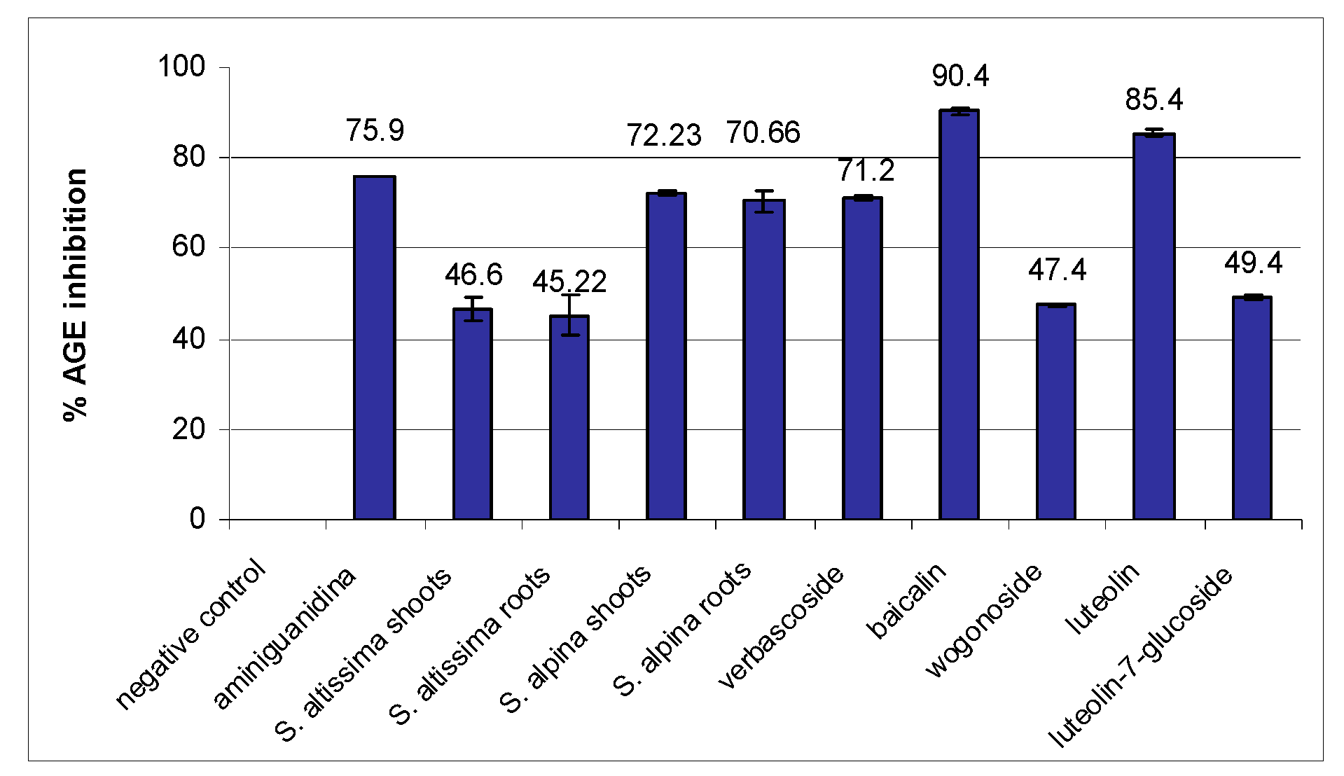 Grzegorczyk-Karolak, I.; Gołąb, K.; Gburek, J.; Wysokińska, H.; Matkowski, A. Inhibition of Advanced Glycation End-Product Formation and Antioxidant Activity by Extracts and Polyphenols from Scutellaria alpina L. and S. altissima L. Molecules 2016, 21, 739. https://doi.org/10.3390/molecules21060739