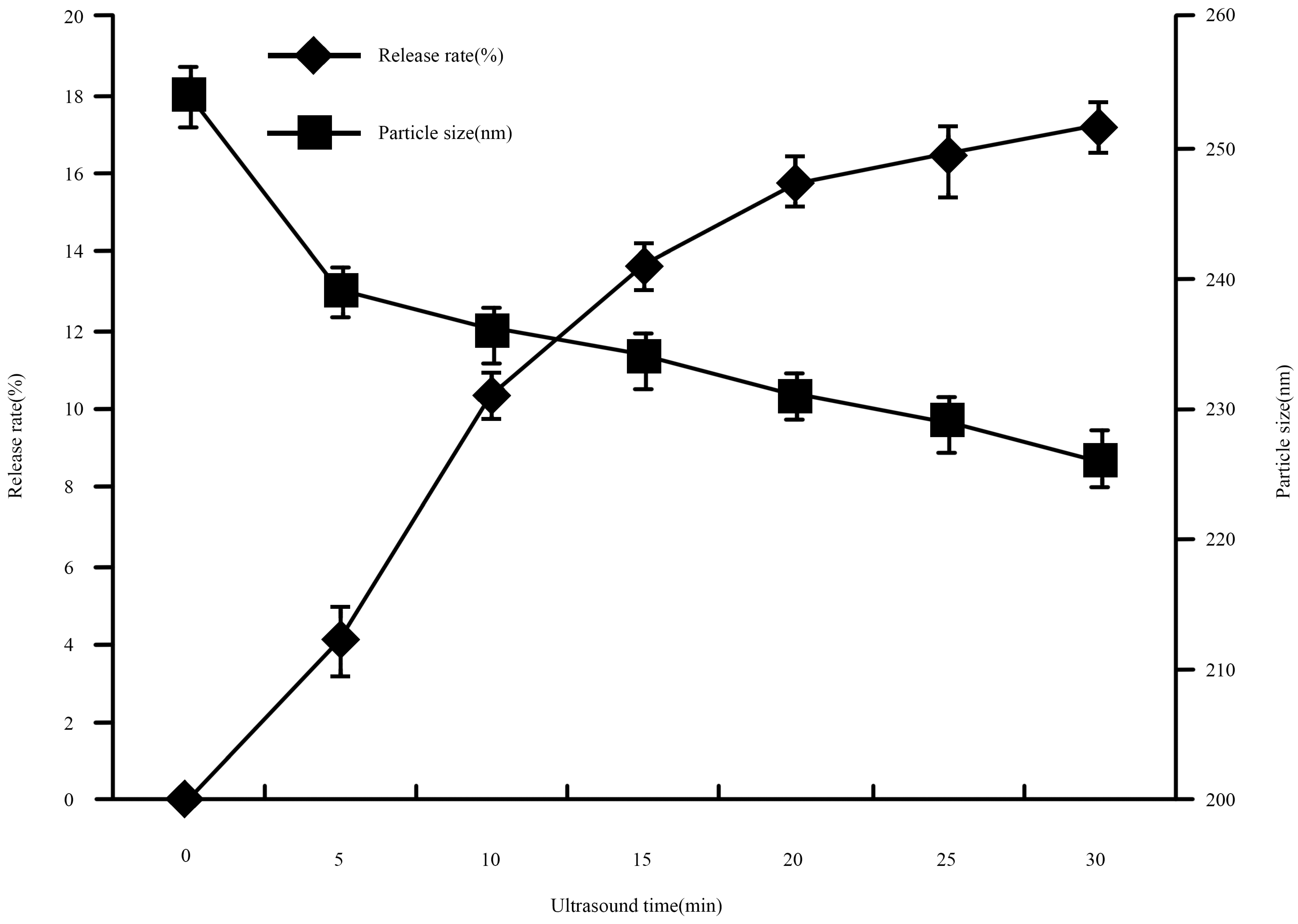 The effect of release ratio on lysozyme nanoliposomes at different ultrasound times.