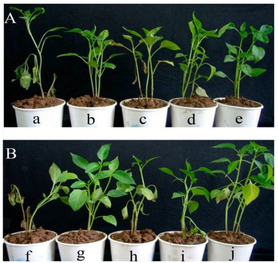 Pepper (Capsicum annum L.), one of the most important market vegetables, is grown worldwide. At present, the pepper industry of China occupies over 1.3 million hectares, producing an annual output valued at nearly 27 billion dollars [1]. However, Phytophthora blight caused by the heterothallic oomycete pathogen Phytophthora capsici Leonian is a major problem affecting the yield and quality of marketable peppers throughout the world [2,3,4,5,6,7,8,9]. The disease cycle is very short. In the early stages, the first signs of disease are brown necrotic areas on the root and crown of plants, after which the disease disperses rapidly to the whole plant through splashing rain or overhead irrigation waters, especially under the condition of wet soils over 18 °C and prolonged wet periods with air temperatures ranging from 24 to 29 °C [10,11,12]. The pathogen is soilborne and can infect roots, crowns and even foliar parts of pepper plants at different developmental phases [13]. It can also survive for several years as oospores in soil or as mycelium in plant residues, which are the primary forms of inocula [14].
