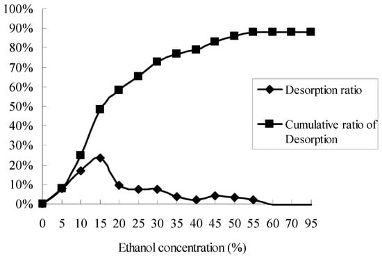 2.3. Effect of Ethanol Concentration on Ratio of Desorption in Static Desorption