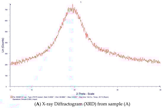 Figure 6A–C present the X-ray diffractograms of TSP extracted from a paddy farm (A), waste from the export tamarind juice industry (B), and export tamarind powder industry (C), which are typical of amorphous materials with no sharp peaks.