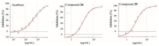 Figure 4. IC50 curves of Acarbose, 26 and 29.