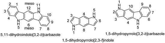 The main focus of this review will be the indolo[3,2-b]carbazoles, but also smaller benzodipyrrole systems like pyrrolo[2,3-f]indoles and pyrrolo[3,2-b]carbazoles (Figure 1), larger systems, and heterocyclic analogs of indolo[3,2-b]carbazole will be discussed.