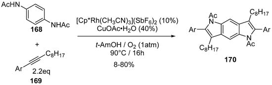 - Clentsmith, G.K.B.; Field, L.D.; Messerle, B.A.; Shasha, A.; Turner, P. Intramolecular cyclization of ortho-alkynylanilines by Rh(I)-catalyzed hydroamination to yield benzo(dipyrroles). Tetrahedron Lett. 2009, 50, 1469–1471. [Google Scholar] [CrossRef]