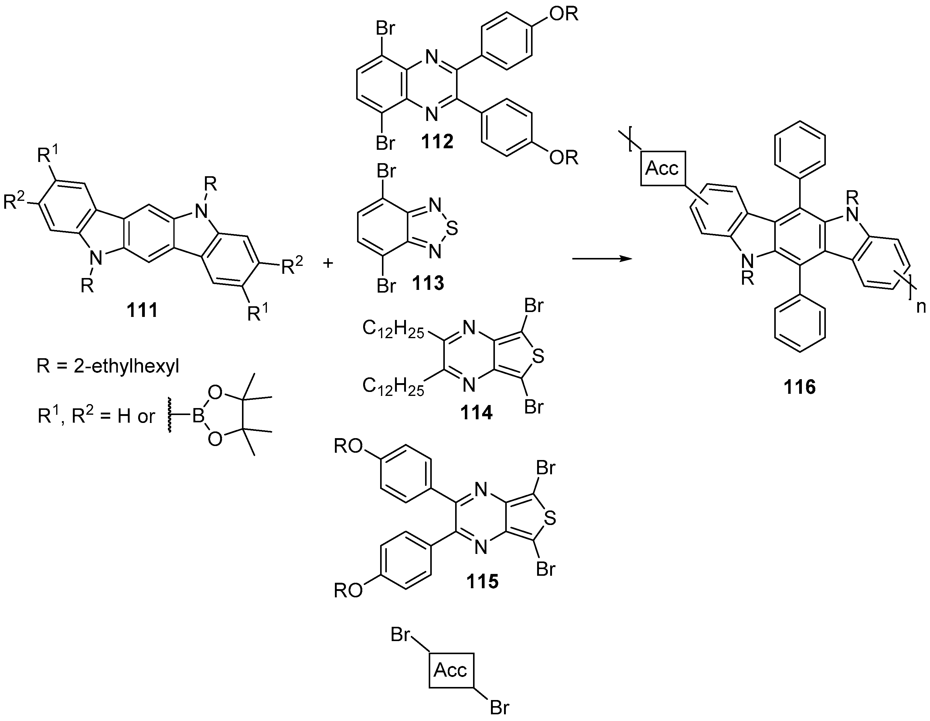 - Tsai, J.H.; Chueh, C.C.; Lai, M.H.; Wang, C.F.; Chen, W.C.; Ko, B.T.; Ting, C. Synthesis of new indolocarbazole-acceptor alternating conjugated copolymers and their applications to thin film transistors and photovoltaic cells. Macromolecules 2009, 42, 1897–1905. [Google Scholar] [CrossRef]