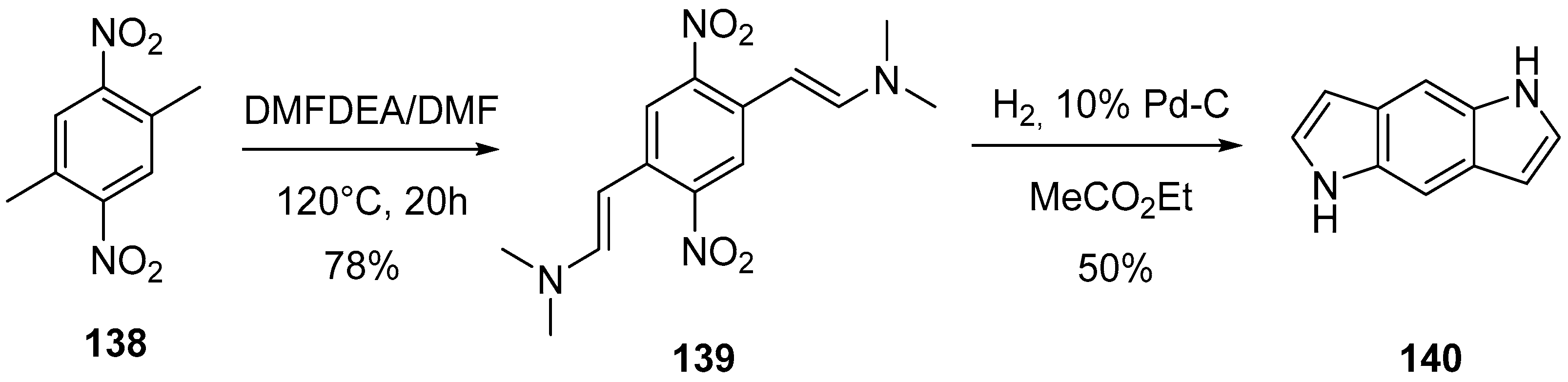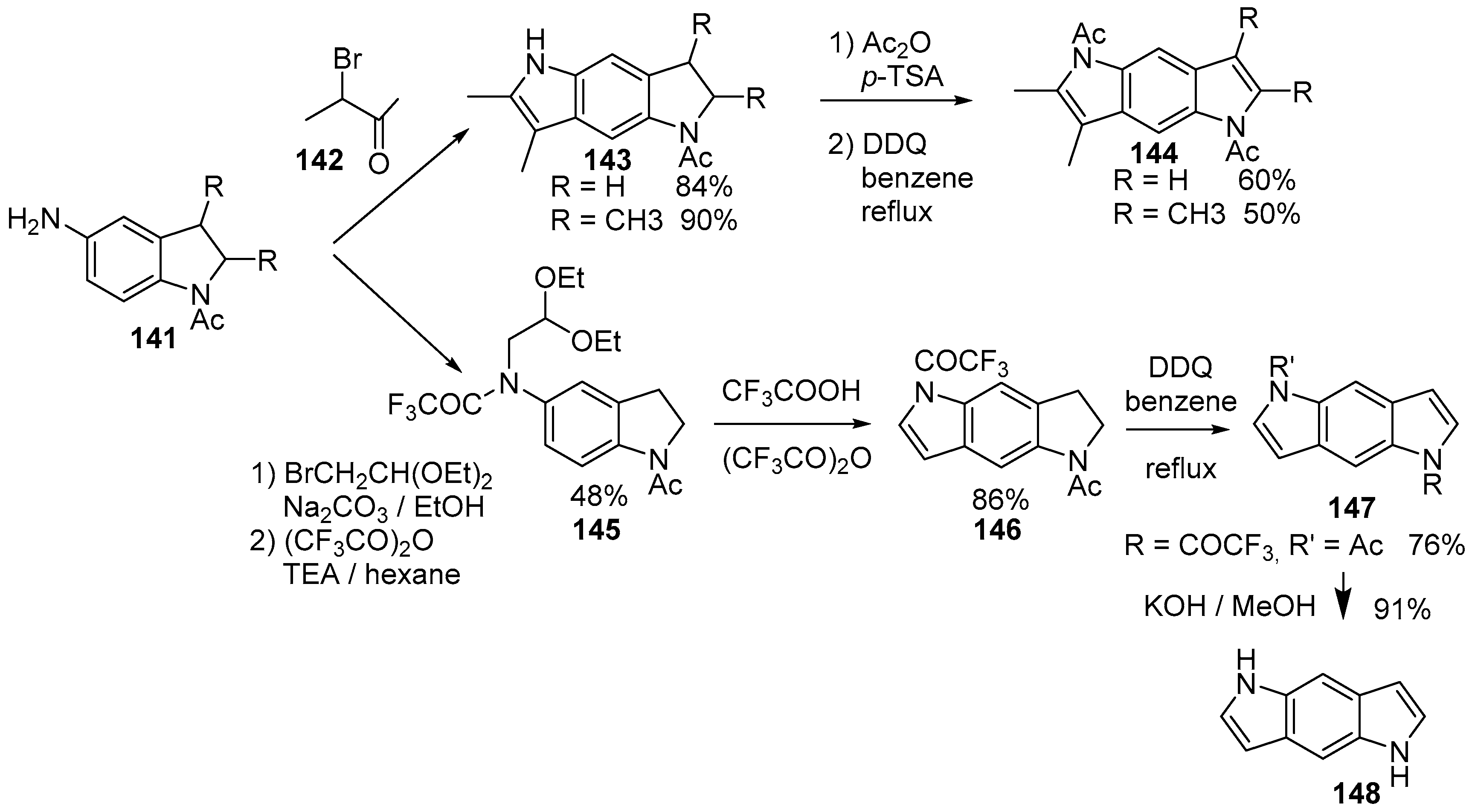 - Chunchatprasert, L.; Shannon, P.V.R. Anti-tumour heterocycles. Part XIV. A new route to pyrrolo-[3,2-f]indoles and the novel pyrrolo[3,2-f; 4,5-f′]diindole system. J. Chem. Soc. Perkin Trans. 1 1996, 53, 1787–1795. [Google Scholar] [CrossRef]