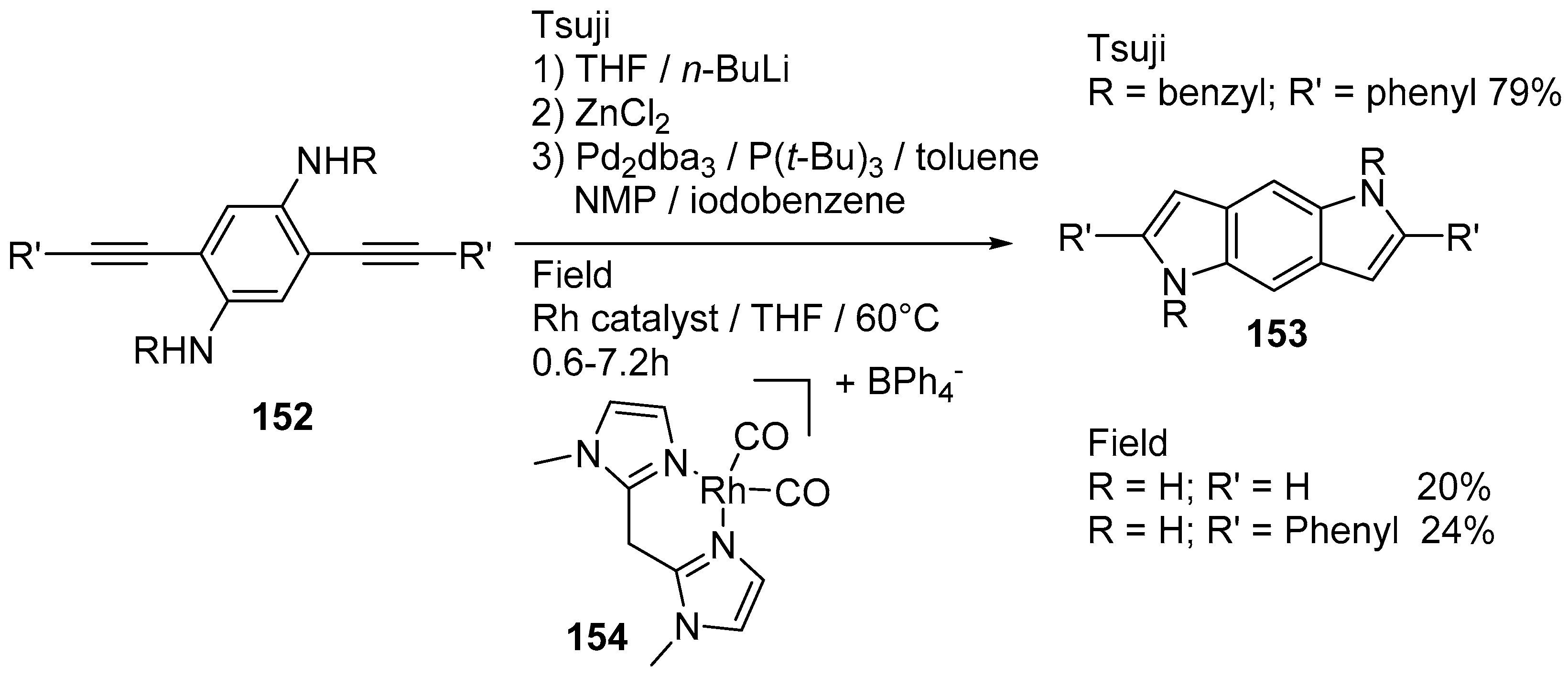 - Clentsmith, G.K.B.; Field, L.D.; Messerle, B.A.; Shasha, A.; Turner, P. Intramolecular cyclization of ortho-alkynylanilines by Rh(I)-catalyzed hydroamination to yield benzo(dipyrroles). Tetrahedron Lett. 2009, 50, 1469–1471. [Google Scholar] [CrossRef]