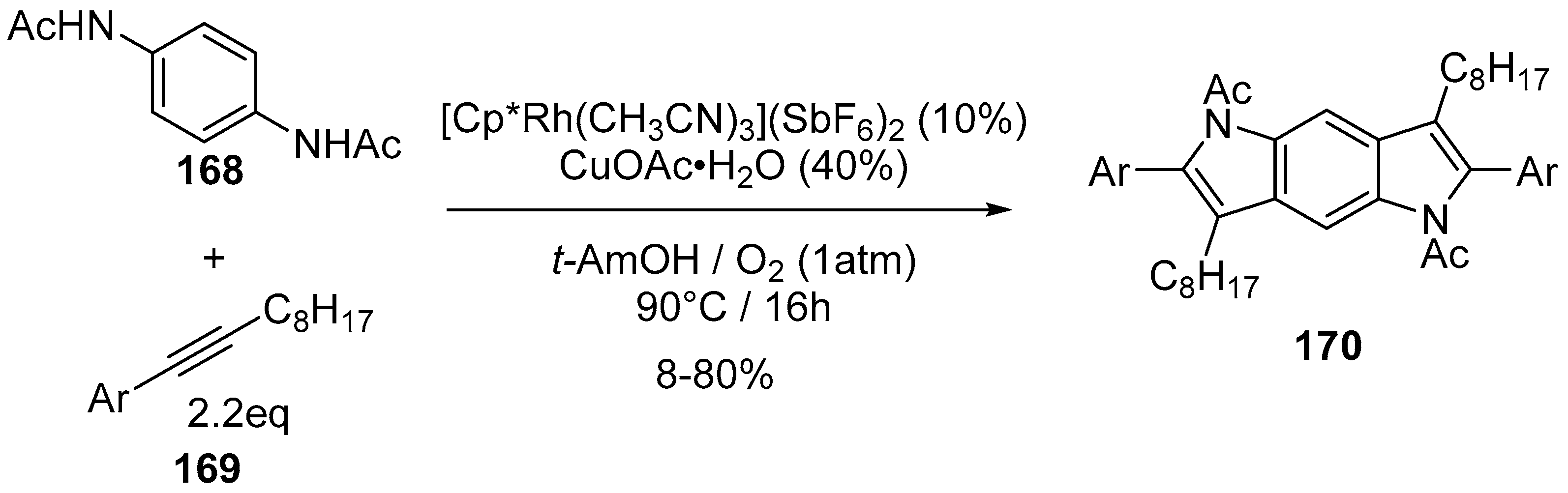 - Wei, Y.; Deb, I.; Yoshikai, N. Palladium-catalyzed aerobic oxidative cyclization of N-aryl imines: Indole synthesis from anilines and ketones. J. Am. Chem. Soc. 2012, 134, 9098–9101. [Google Scholar] [PubMed]