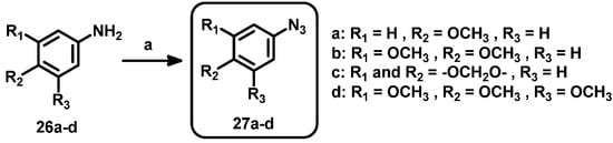Next, aromatic azides 27a–d were prepared by the reaction of aromatic amines 26a–d with t-BuONO/TMSN3 using the protocol reported by Moses et al. (Scheme 2) [12,32].