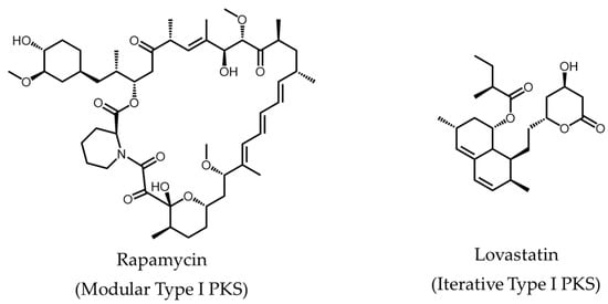 Examples of polyketides synthesized by the different classes of PKSs.