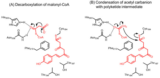 - Jez, J.M.; Ferrer, J.L.; Bowman, M.E.; Dixon, R.A.; Noel, J.P. Dissection of malonyl-coenzyme a decarboxylation from polyketide formation in the reaction mechanism of a plant polyketide synthase. Biochemistry 2000, 39, 890–902. [Google Scholar] [CrossRef] [PubMed]