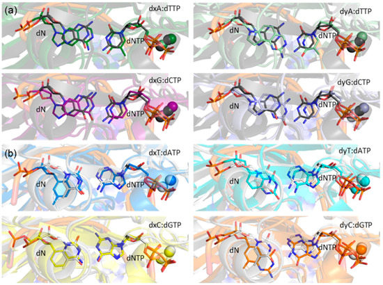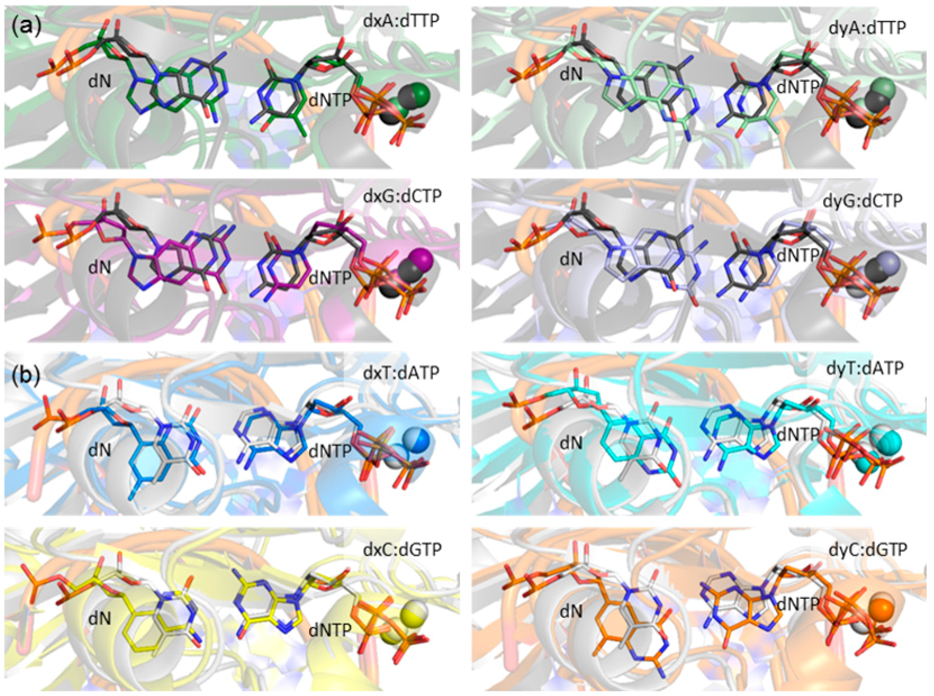 2.5. Canonical dN:dNTP Base-Pair Interactions Are Maintained for (x,y)DNA Bases, with the Exception of dyC, dxC and dyA