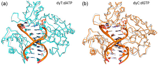2.1. Catalytic Palm Domain Does Not Significantly Rearrange for the Replication of (x,y)DNA Bases, with the Exception of Modified Cytosine