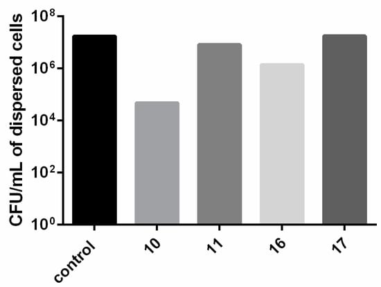 2.2.2. Evaluation of Compounds 10, 11, 16 and 17 at 40 μM in P. aeruginosa Biofilms