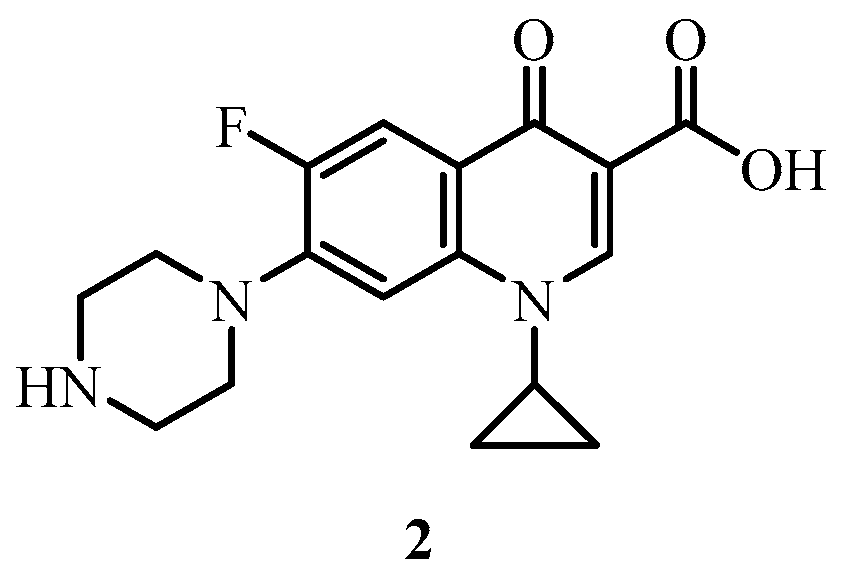 - Campoli-Richards, D.M.; Monk, J.P.; Price, A.; Benfield, P.; Todd, P.A.; Ward, A. Ciprofloxacin. A review of its antibacterial activity, pharmacokinetic properties and therapeutic use. Drugs 1988, 35, 373–447. [Google Scholar] [CrossRef] [PubMed]