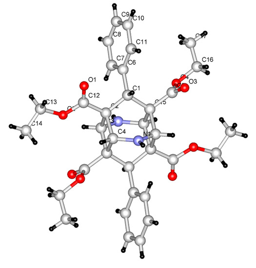Furthermore irradiation of 1a alone in acetonitrile solution leads to the corresponding oxidized pyridine derivative 3a. Under the same conditions irradiation of diethyl 4-phenyl-1,4-dihydropyridine-3,5-dicarboxylate (7) produced the cage compound 8 as shown in Scheme 4 and Figure 2. These facts showed different photochemical behavior for compounds 1a–c than those reported for the other dihydropyridine derivatives. The possibility of the formation of compound 6a by [4 + 2] thermal cycloaddition reaction has also been excluded, when attempts to react 1a with 2a at temperature of 180 °C for 1 h, gave only the unreacted starting material.
