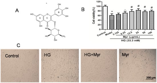 2.1. Myricitrin Inhibits HG-Induced H9c2 Cell Death
