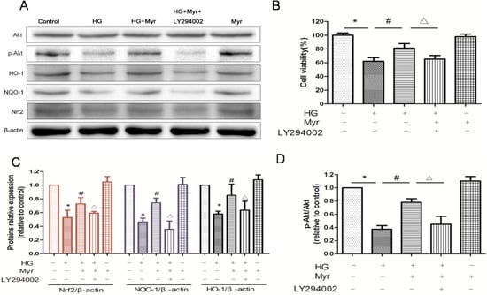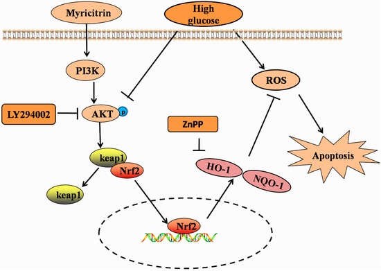 APA StyleZhang, B., Chen, Y., Shen, Q., Liu, G., Ye, J., Sun, G., & Sun, X. (2016). Myricitrin Attenuates High Glucose-Induced Apoptosis through Activating Akt-Nrf2 Signaling in H9c2 Cardiomyocytes. Molecules, 21(7), 880. https://doi.org/10.3390/molecules21070880