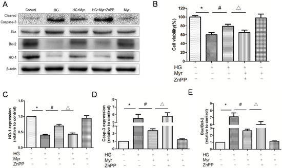 - Dong, C.; Zheng, H.; Huang, S.; You, N.; Xu, J.; Ye, X.; Zhu, Q.; Feng, Y.; You, Q.; Miao, H.; et al. Heme oxygenase-1 enhances autophagy in podocytes as a protective mechanism against high glucose-induced apoptosis. Exp. Cell Res. 2015, 337, 146–159. [Google Scholar] [CrossRef] [PubMed]