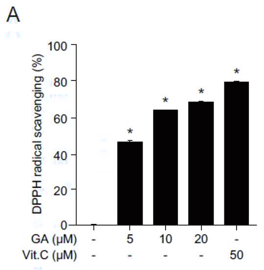 2.2. Antioxidant Effects of GA in Human Keratinocytes