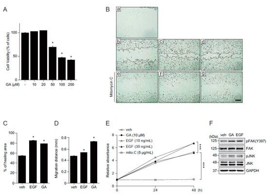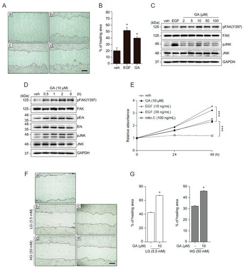 2.5. The Effects of GA on Wound Healing in Human Fibroblasts