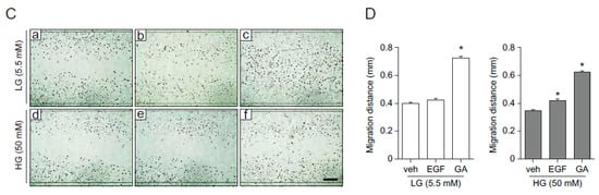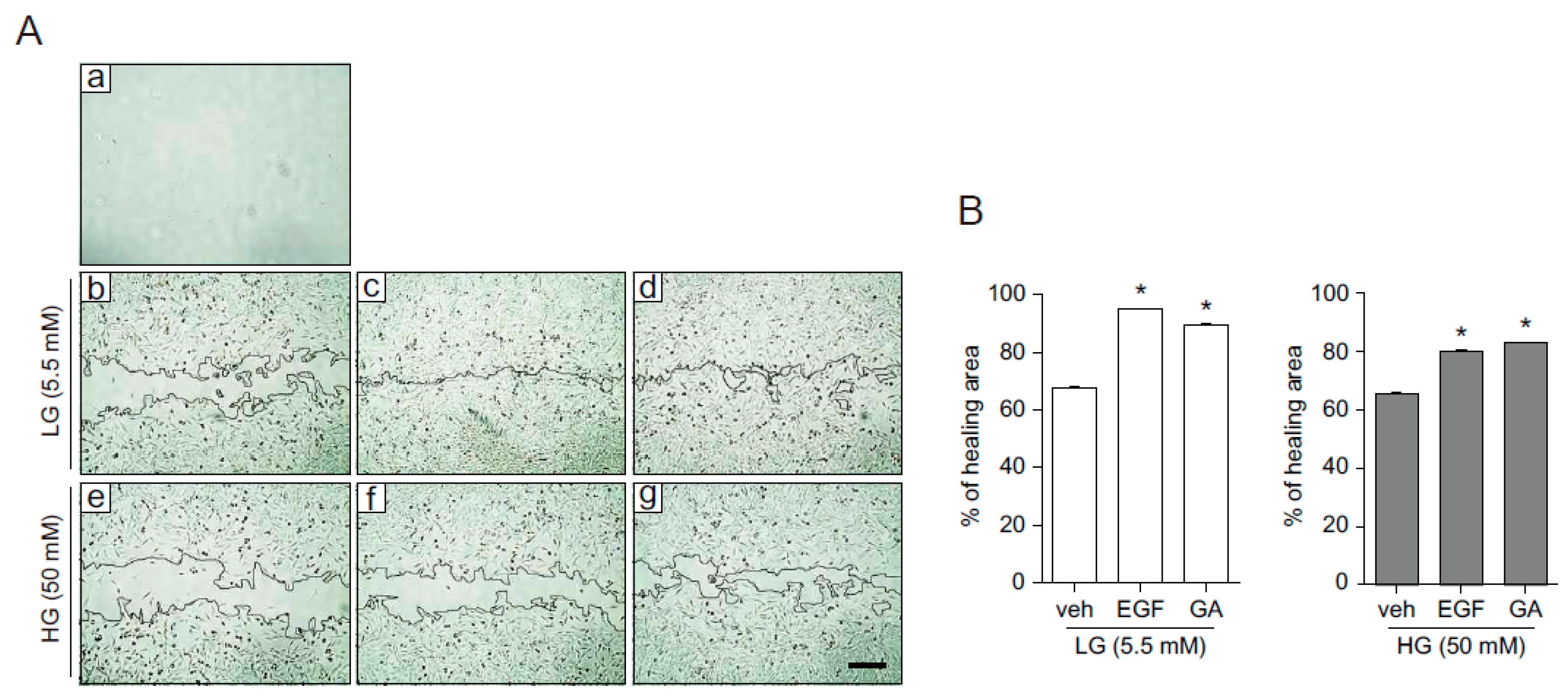2.4. GA Promotes Wound Healing Process in Hyperglucidic Condition