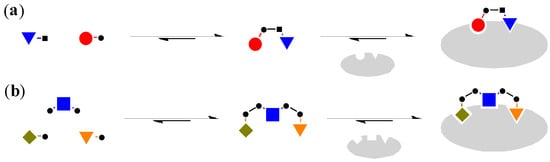 (a) Mono-functionalised building blocks to generate dimeric molecules [29]; (b) The use of bi-functionalised linker and mono-functionalised head groups to generate trimeric molecules [30].