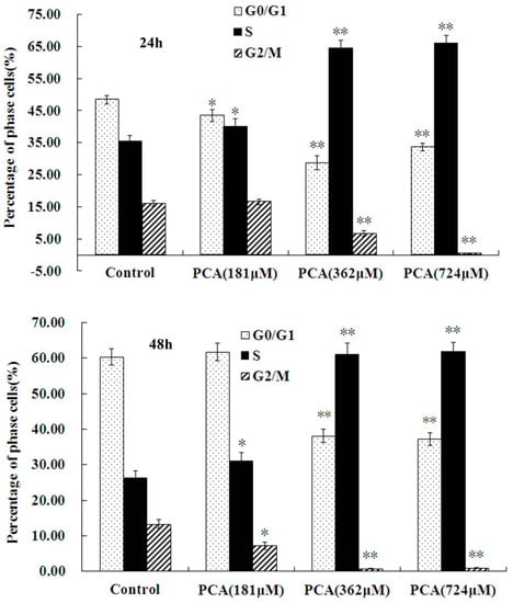 2.2. PCA Induced S-Phase Cell Cycle Arrest